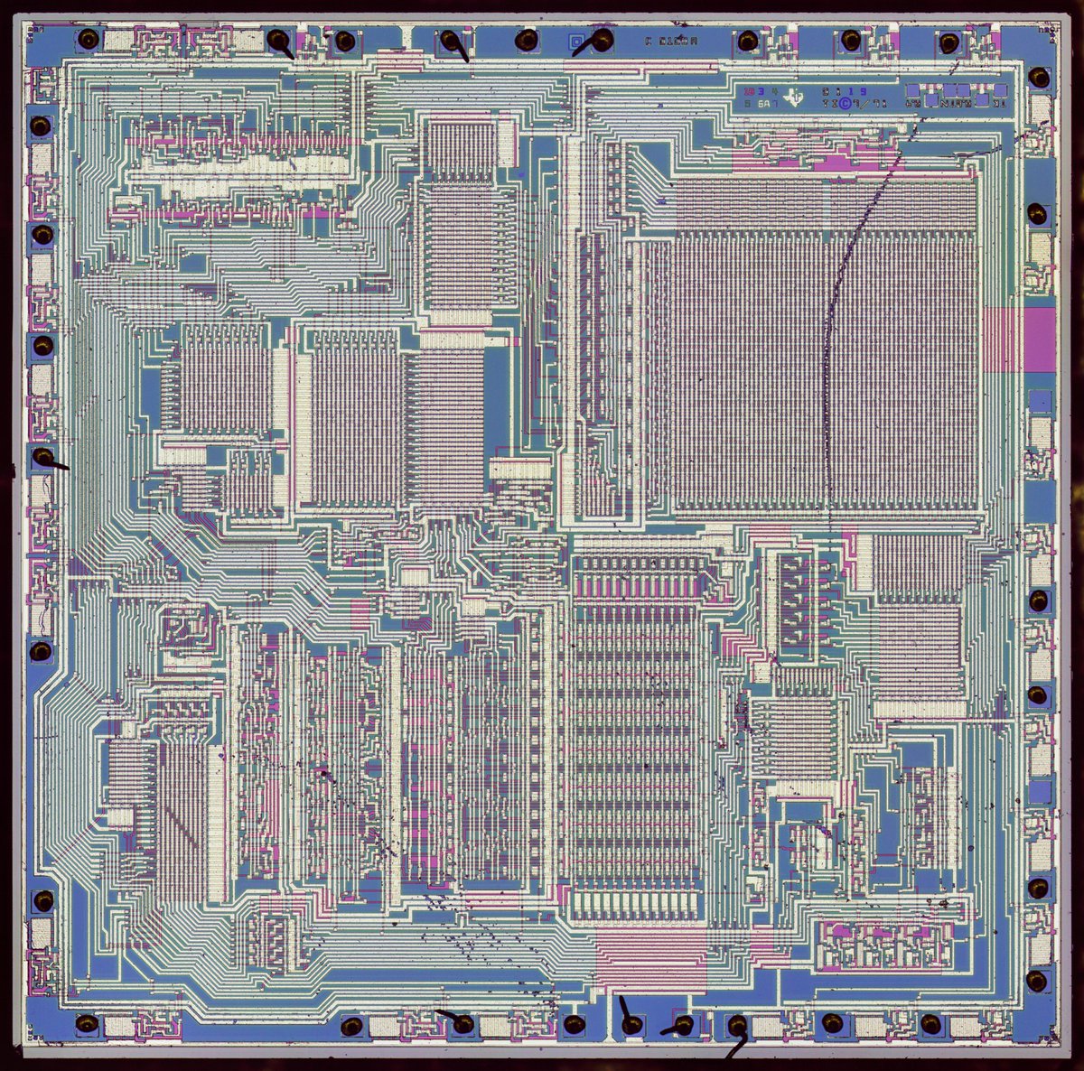 Ti TMS0119 - single-chip calculator (1971) : weekend die-shot http://zeptobars.com/en/read/Ti-TMS0119-single-chip-calculator-Texas-Instruments-1971-TI-2500 … via