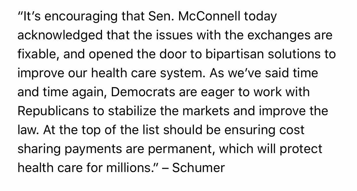 Sen. Chuck Schumer responds to Majority Leader Mitch McConnell's comments on healthcare earlier todaypic.twitter.com/S8LFrJT4Uo