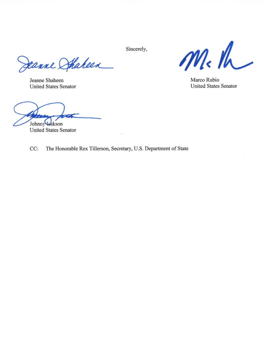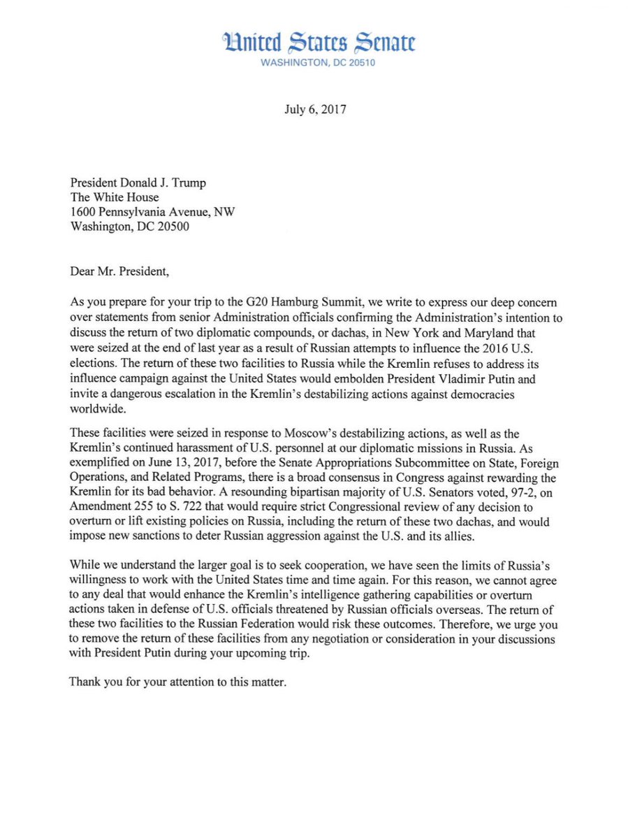 Sens Rubio, Shaheen and Isakson send ltr to Trump with a request: Don't give Putin the Russian compounds seized by US in Dec of 2016 -->pic.twitter.com/97i2zpbivo