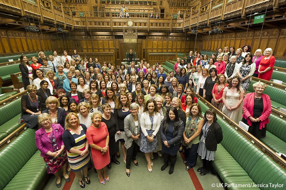 Women Members of Parliament stand together in the House of Commons