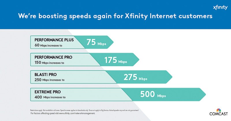 Comcast is increasing download speeds on some of its most popular