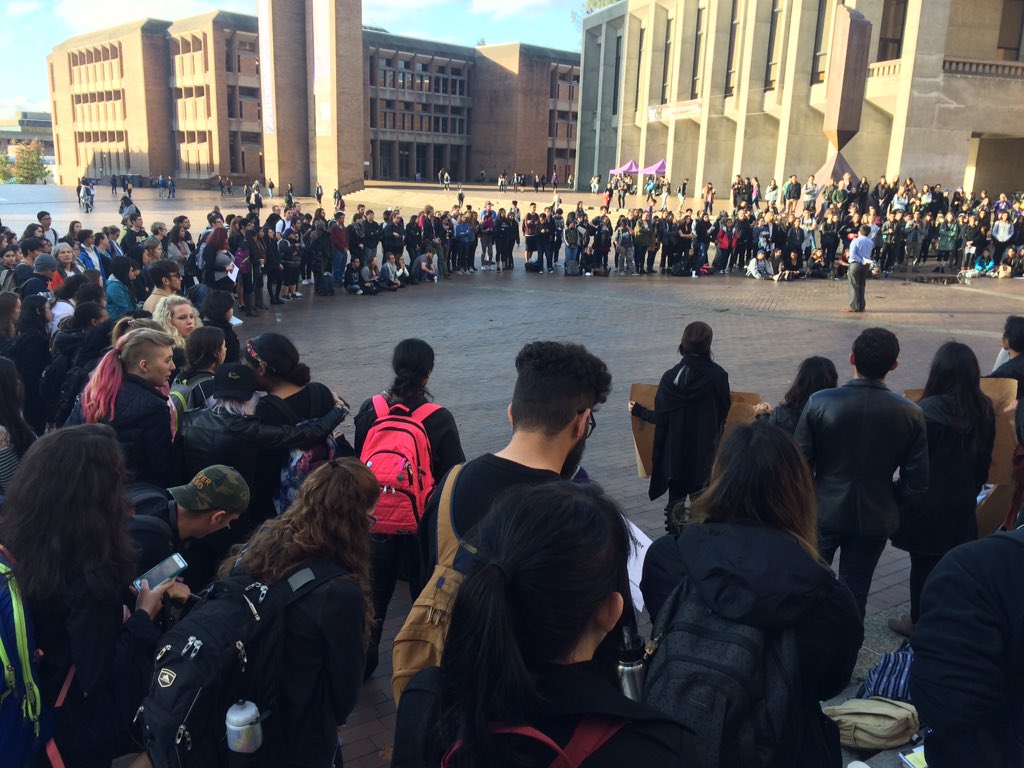 Hundreds of @UW students in protest circle on Red Square, speaking out against Trump. Been going on for hours. Mood is somber.pic.twitter.com/ZQHG3RufCf
