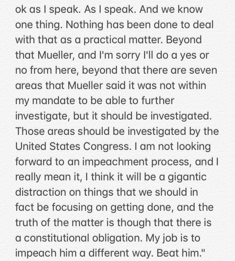 Last night in Concord, NH Biden was asked if impeachment proceedings should start. He said if Trump does not cooperate with investigations then Congress has no option but to begin an inquiry. He ended his answer: “My job is to impeach him a different way. Beat him." pic.twitter.com/4UULmDNThB