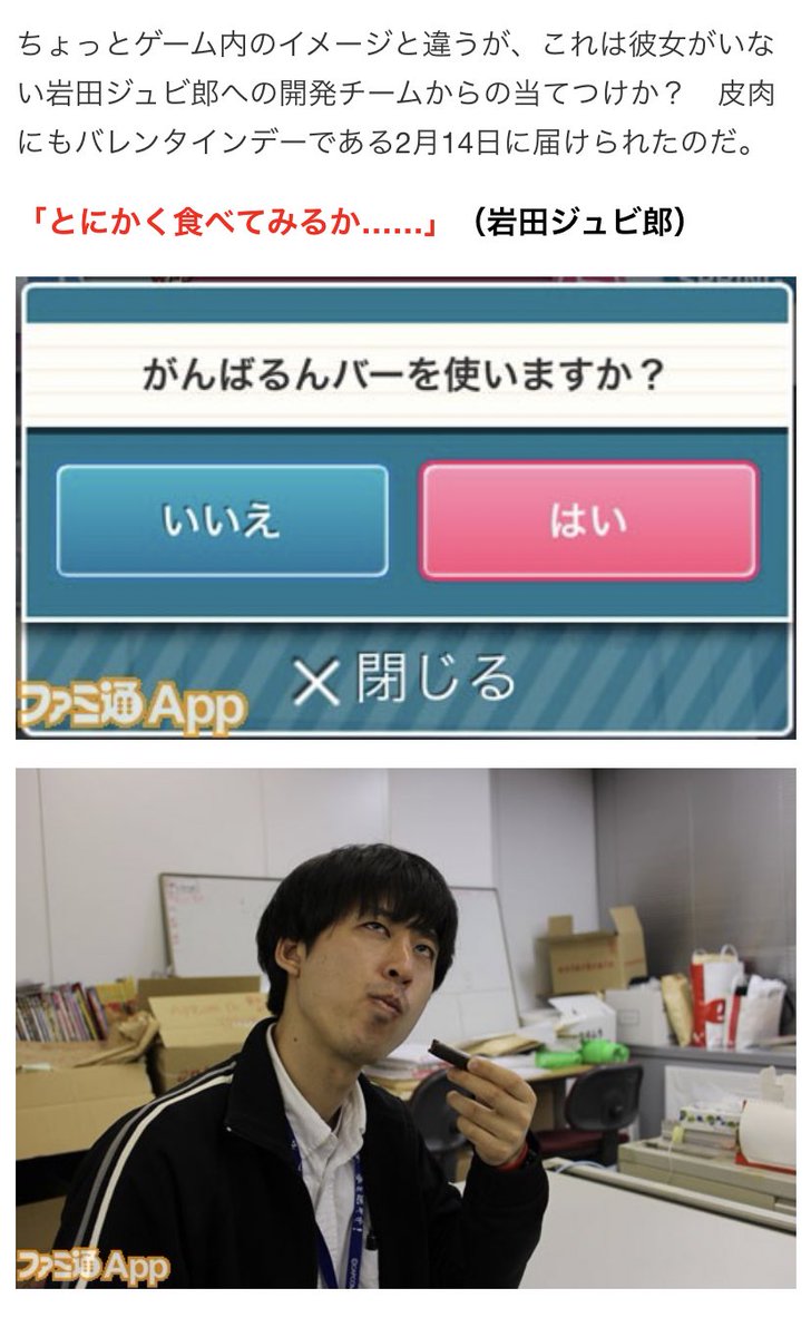 『ガールフレンド(仮)』の体力回復アイテム“がんばるんバー”を食べてみた結果 [ファミ通App] https://app.famitsu.com/20140214_318030/ …pic.twitter.com/9ojPDlbXF5