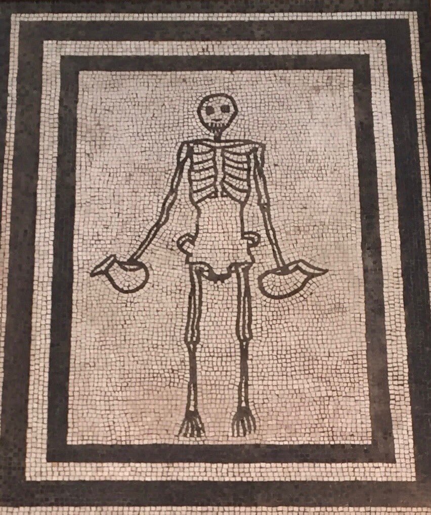 #Halloween! Fittingly grim mosaics from the Roman period communicating the notion of 'memento mori'—'remember that you have to die'.pic.twitter.com/zF1yYgQW63