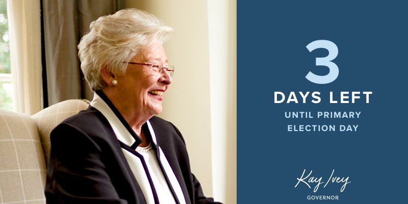 There are only 3 days left until Primary Election Day, and we’re counting on every member of Team Ivey to vote. Remember to bring a valid photo ID before you head to the polls on Tuesday, June 5. Find all of the voting information you need here: https://vote.gop/?utm_source=105983 …pic.twitter.com/QpOOy7twuO
