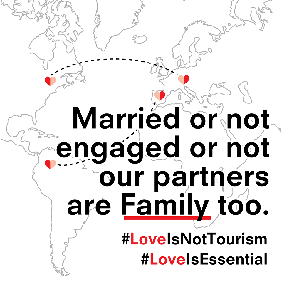 Unmarried couples are calling for changes to the European Union’s travel restrictions, using the hashtag