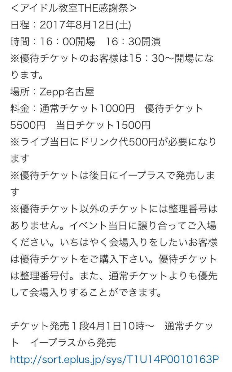 【拡散希望・ライブご招待】8月12日、アイドル教室がZeppNAGOYAでワンマンライブを行います!が、手元にチケットがめっちゃあります。そこで!とにかく周りの方を誘ってみて下さい。チケットは何枚でもプレゼントします!100人でも200人でも大丈夫ですので是非声掛けお願いします!pic.twitter.com/Zl1pBhwjg5