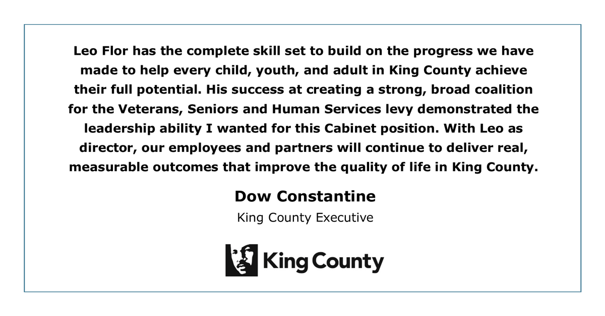 Executive Constantine appoints Leo Flor to serve as the director of King County Department of Community and Human Services.