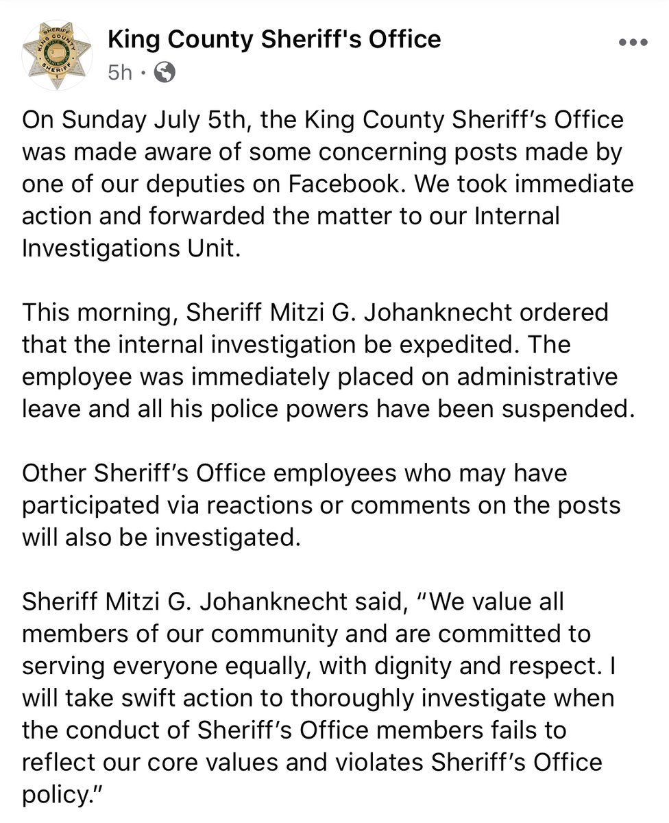 I don't read this as an excuse; to me this reads as an attempt to highlight how there should be more external oversight. King County has been trying to increase external oversight of police and has met stiff opposition.https://www.thestranger.com/slog/2020/02/10/42791505/city-of-seattle-sues-county-to-block-investigations-into-fatal-police-shootings …