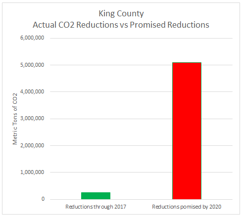 One goal King County didn't exceed is the only one that counts - CO2 reduction. Through 2017, the county achieved only 4% of CO2 reductions promised by the County Exec. Claiming success when missing the target by 96% betrays a complete lack of seriousness about climate change.pic.twitter.com/J3xudgg6qU