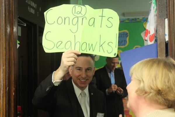 They gave us a great NJ welcome by having students create and hang a “Congrats @Seahawks” sign to greet us. #SeaPreKpic.twitter.com/53DHQnJ8GS