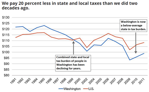 Washington residents pay fewer taxes than the national average and 20% less than we did two decades ago. #kcbudgetpic.twitter.com/EqDv6nKKzC