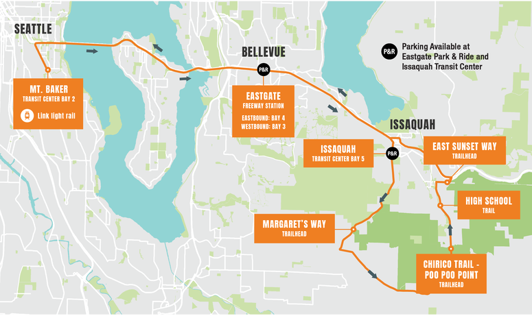 This weekend's forecast? Sunny with 100 percent chance of transit-to-trails service to the Issaquah Alps 🚇🚍🐾🐾🌲🏞️ #TrailheadDirect cc @KingCountyWA @REI @kcmetrobus @iheartkcparks @WTA_hikershttps://twitter.com/iheartkcparks/status/989950366648156160 …