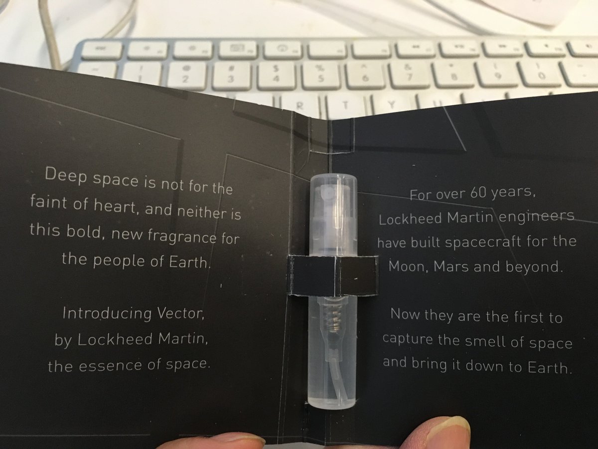 Also Lockheed isn't the first to capture the smell of space! The Rosetta folks made a 67P/Churyumov–Gerasimenko perfume a few years ago (it smelled like rotten eggs).