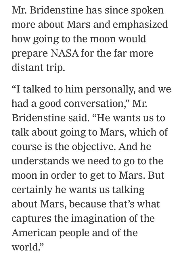 My problem with this view, is that they seem to be setting themselves up to fail, the same way they did with the Apollo missions. They want to go to Mars because of "public interest", but we all know what happens with that interest after we do it a couple of times.
