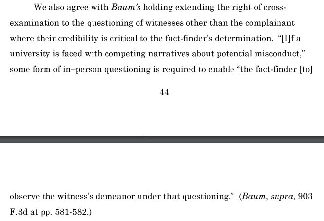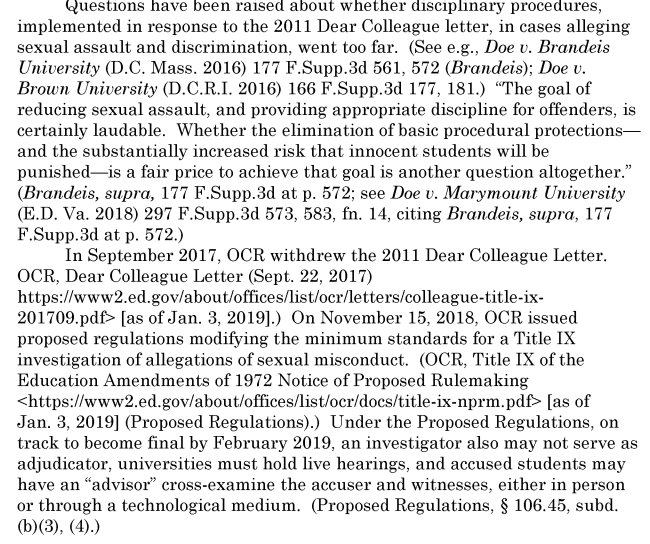And, in fact, a couple of pages later in the decision, the Cal appeals court cites to the Brandeis and Marymount opinions, two of the strongest pro-student opinions in the wave of post-Dear Colleague letter litigation.pic.twitter.com/6RKuKGBpL3