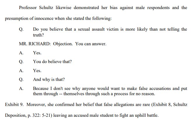 From a deposition of the prof in charge of Brown's TIX tribunals. Even the studies cited by the Obama adm conceded that some accusers do file false claims, and many more claims are ambiguous.pic.twitter.com/Hw1gWc6A9M