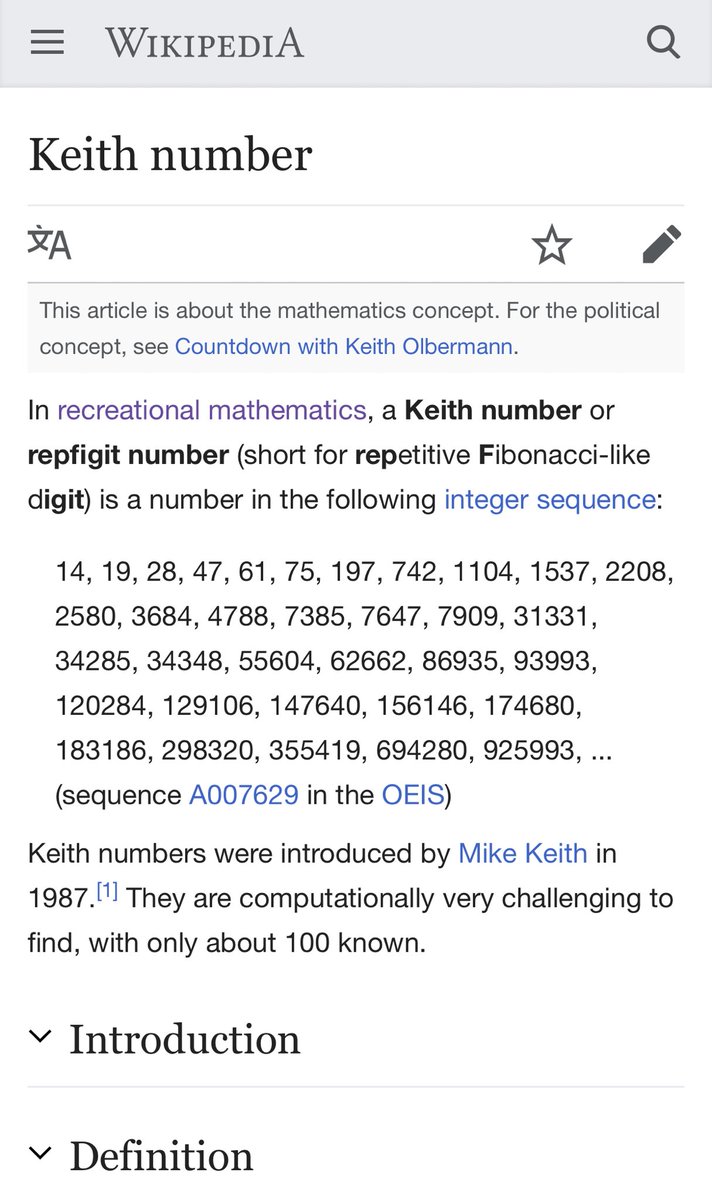 TIL there is something called recreational mathematics https://en.m.wikipedia.org/wiki/Keith_number …pic.twitter.com/yhZuIOlHLg