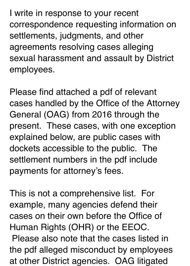 DC paid over $2 million to settle sexual harassment & assault agreements & judgements involving DC employees. TY @AGKarlRacine for sharing info. @MayorBowser we have a problem. @DC_Chander @EvanforANC @Erinfor4B02 @FenitN @jeffreyanders19 @ODCA_DC @ANCJonah @mitchryals pic.twitter.com/EauReBzudy