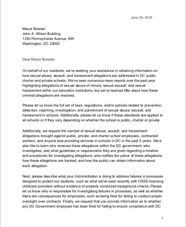 . @WTUTeacher @rweingarten please share letter that 59 elected officials sent to Mayor Bowser re sexual harassment in DC schools. @jessicasutterW6 @Erinfor4B02 @johnson4b06 @coreyholman @jarharnett @TheMonikaNemeth Jerry Malitz John Guggenmos @RandyDaleDowns @ANCJonah