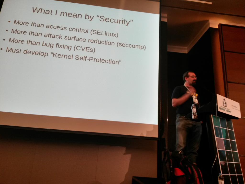 @kees_cook leading the security hardening session at the Linux Kernel Summit #lflkspic.twitter.com/EJkizT10VY