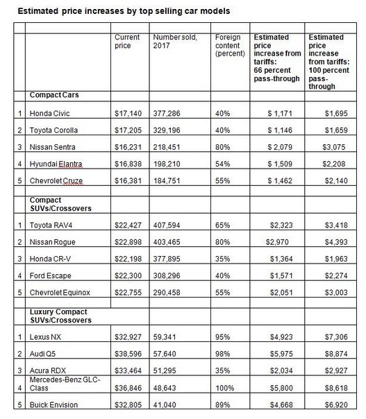 Here's how much more your next car could cost thanks to Trump's tariffs: ■ Toyota RAV4: $3,418 more ■ Nissan Sentra: $3,075 more ■ Chevy Equinox: $3,003 more ■ Ford Escape: $2,274 more ■ Honda Civic $1,695 more https://www.cnbc.com/2018/07/18/heres-how-much-your-next-car-could-cost-if-trump-auto-tariffs-go-thro.html …pic.twitter.com/FtY6wTf4nY