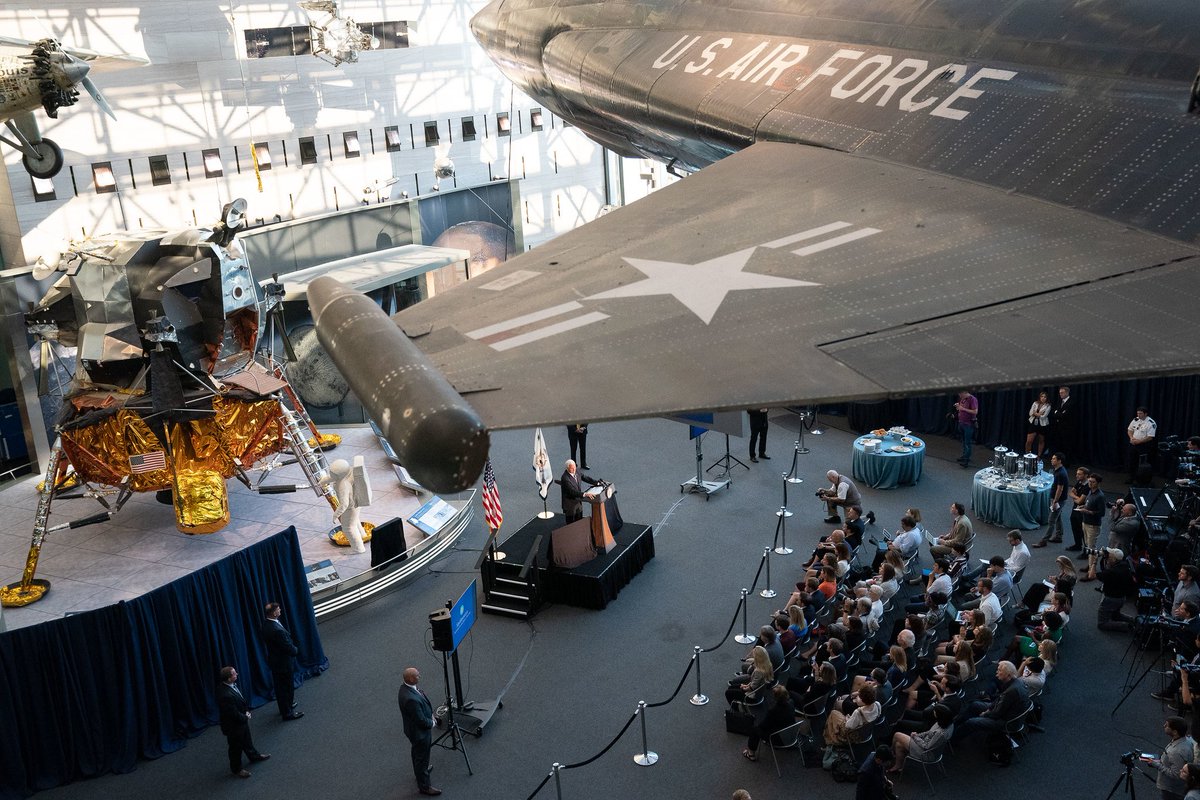 @VP: "On top of the contributions to science and human understanding, for that brief moment, the man who wore this suit brought together our nation and the world."#Apollo50pic.twitter.com/u4UyypOE3f
