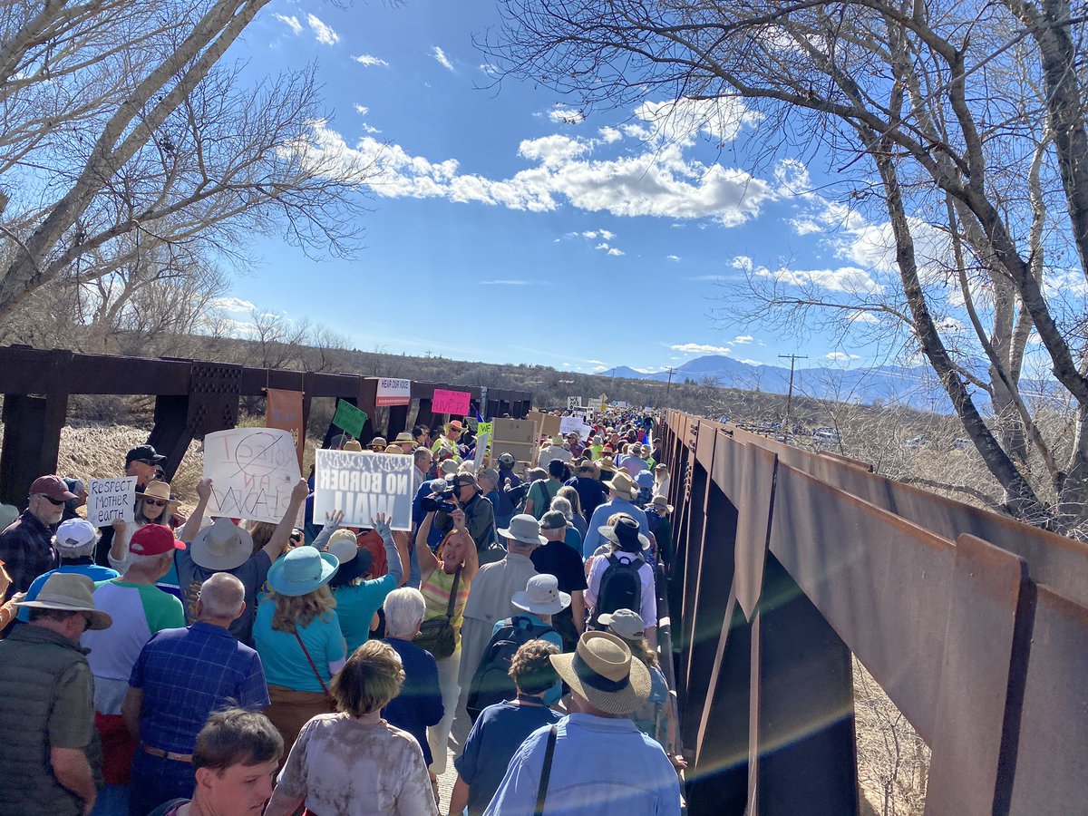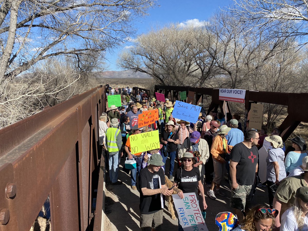 #STOPTHEWALL protest at the San Pedro River. This is likely the largest political demonstration EVER in Arizona’s rural Cochise County.#NoBorderWallpic.twitter.com/b62W9FWNgU – mjesto: Hereford, AZ