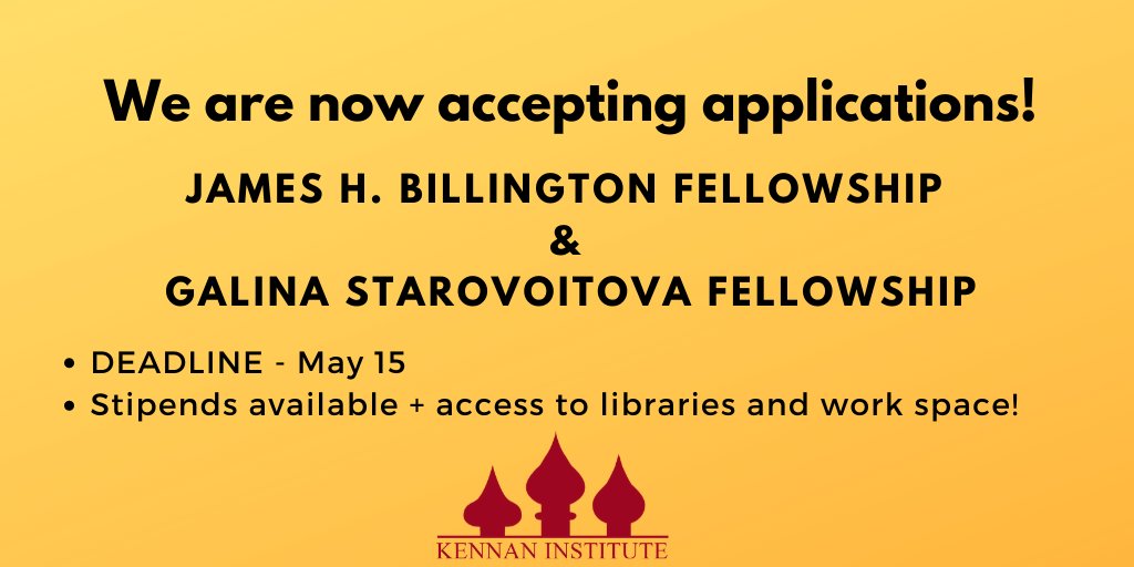 REMINDER: For those looking to conduct research on Russian history/culture or on human rights/conflict resolution, our Billington Fellowship or Starovoitova Fellowship is the perfect fit! Visit our site for more info on eligibility & applying!