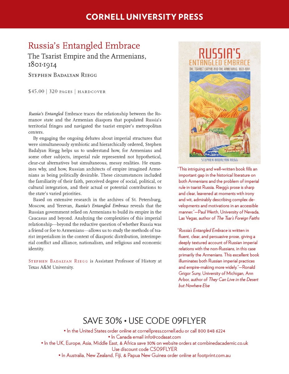 It's release day for my book, which traces the evolution of #tsarist policies toward Eastern Armenians! I wrote it for a broad audience, so if you're interested in #Russian #imperialism, the South #Caucasus, and/or #Armenian #history, check it out! Here's a flyer for 30% off. pic.twitter.com/FTSRLszlQz
