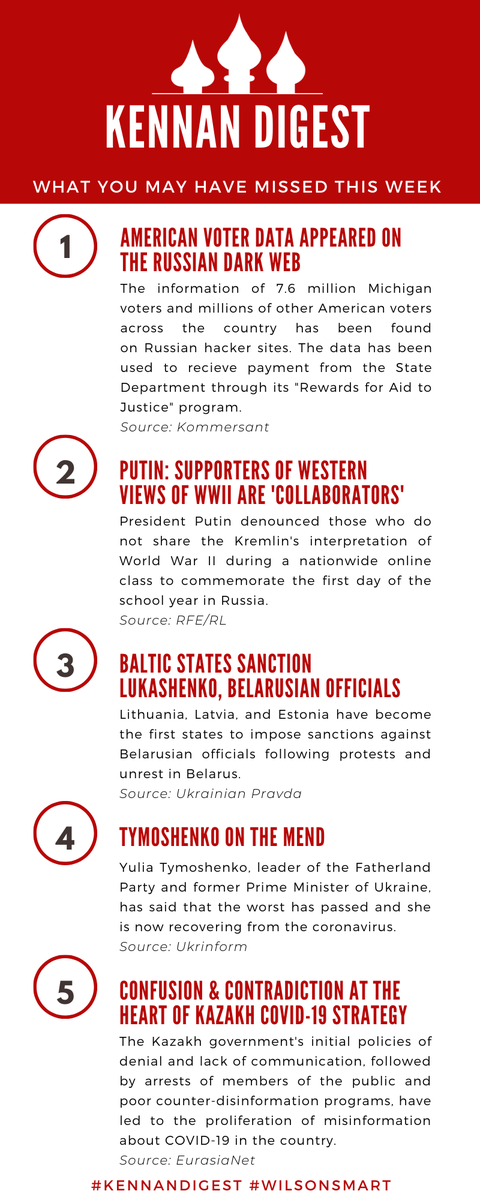 Here is what you may have missed in #Eurasia for this week's #KennanDigest! 🗳️ voter data & the dark web 📚 WWII historical memory ✖️ sanctions against Belarusians 🦠 COVID-19 & Tymoshenko 💻 fake news in Kazakhstan @kommersant @RFERL @ukrpravda_news @UKRINFORM @EurasiaNetpic.twitter.com/RX0Pif6Bfn