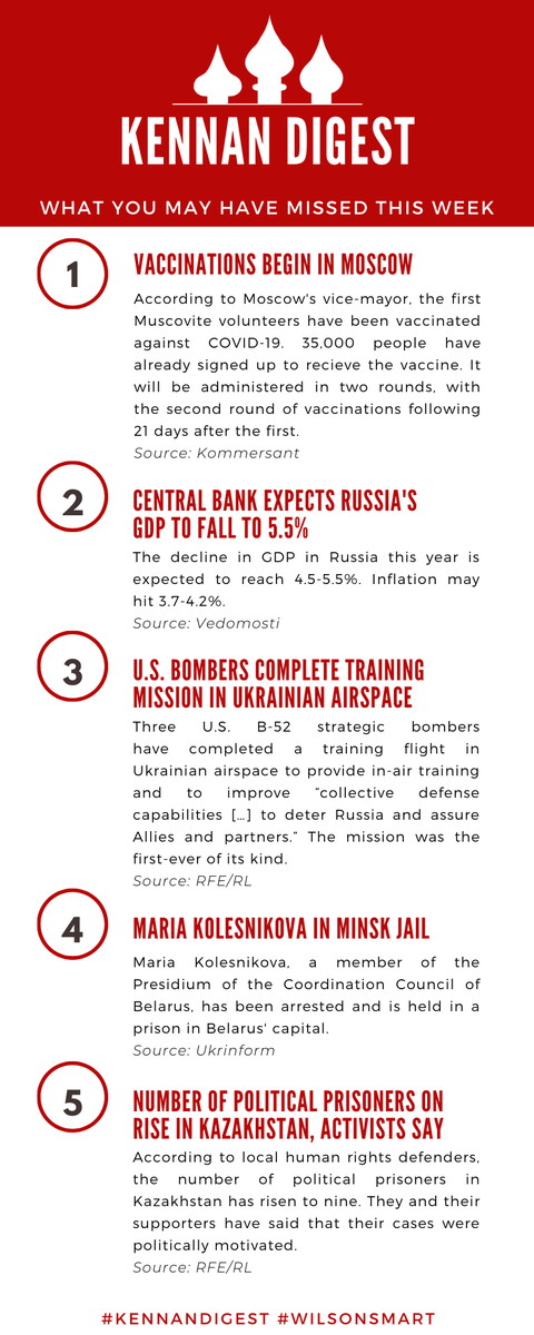 Our latest #KennanDigest is out! Here are a few top stories you may have missed in the #Eurasia region. 💉 COVID-19 vaccine 🏦 Russia's central bank ✈️ US training flight in Ukraine 👩 Maria Kolesnikova ⛓️ Kazakh political prisoners @kommersant @Vedomosti @RFERL @UKRINFORMpic.twitter.com/ecm4lThjkv