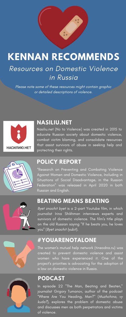 Click on our graphic 👇 which features advocacy organizations' sites & multimedia covering #DomesticViolence awareness in #Russia. 📺 Also, WATCH our recent event on Russian domestic violence reform at the link here ▶️ https://buff.ly/3k5Ypqq  See our next tweet for links!pic.twitter.com/UTnq1gr3Af