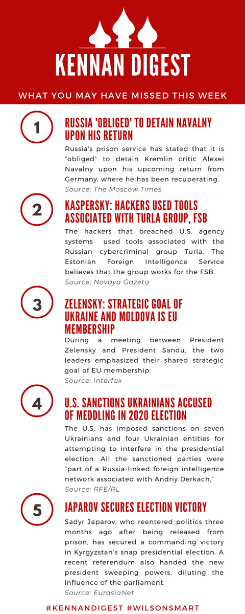 Here are some of the top stories you may have missed in #Eurasia this week! ⛓️ on Navalny's return to Russia ⌨️ on the recent hack 🇪🇺 on a Ukraine/Moldova meeting 🗳️ on new US sanctions 🏁 on Japarov's victory @MoscowTimes @novaya_gazeta @interfaxua @RFERL @eurasianetpic.twitter.com/yB9PiEbpM2