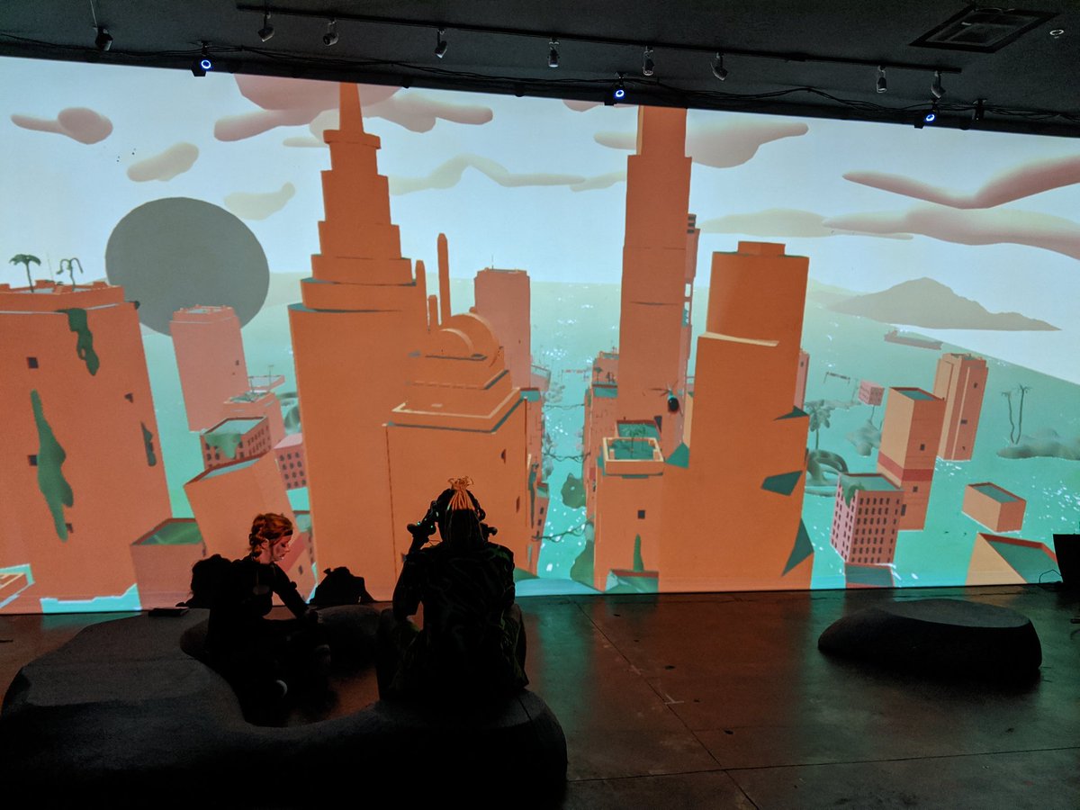 20/ ANTI-GONE is a mixed reality theater performance. 3 actors embody virtual characters on a screen via VR, mo-cap, & XBOX controllers. Adapted from a graphic novel, it's a character-driven, open world narrative. Interesting world-building, live music, very dynamic 75m x 47 ppl.pic.twitter.com/qrRrbnzfL5