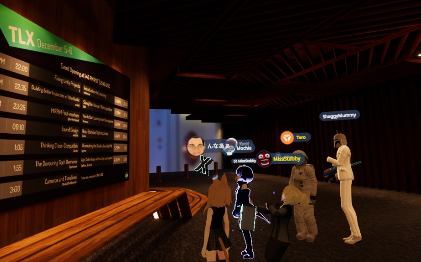 7/ There's a countdown timer at the back of the room for the speaker as well. I'm pretty blown away by the caliber of worldbuilding of the @VRChat @VRCPrefabs community. #PrefabsTLXpic.twitter.com/iE88bsjDGD