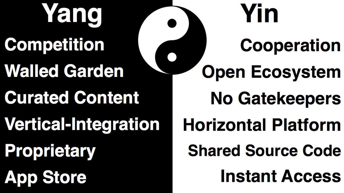 The underlying tension of politics & technology is the balance of yang/yin, competition/cooperation, masculine/feminine, closed/open, centralized/decentralized. The more equitable distribution of resources cryptonetworks & blockchain has the power to shift to more yin principles.pic.twitter.com/QLpNWUiraH