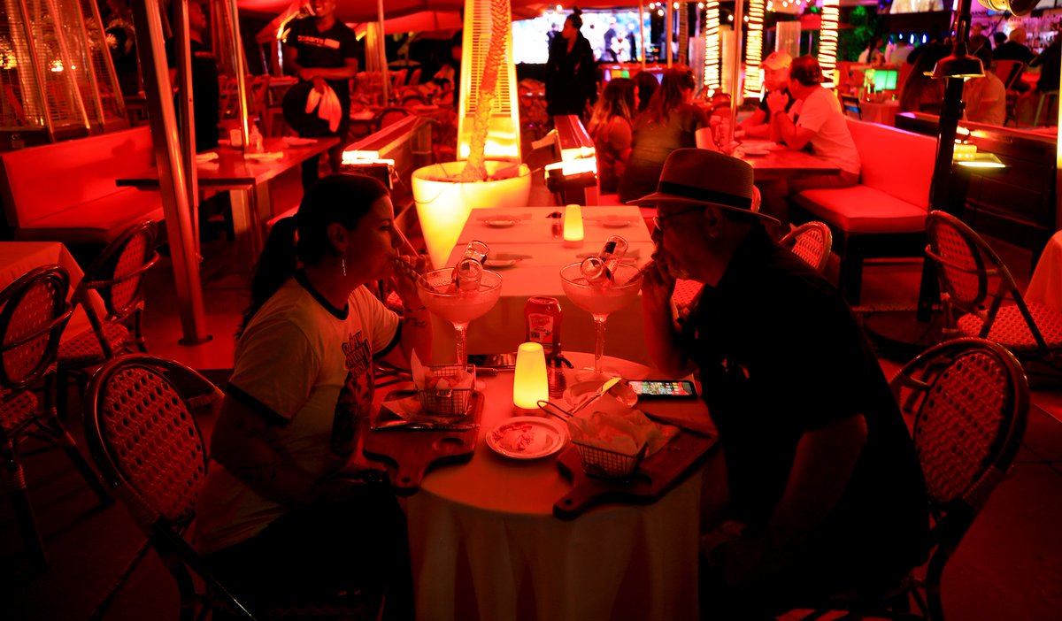 One of the more unusual sights just off Miami Beach Tuesday evening. I'm told the floating advertisements are fairly common.