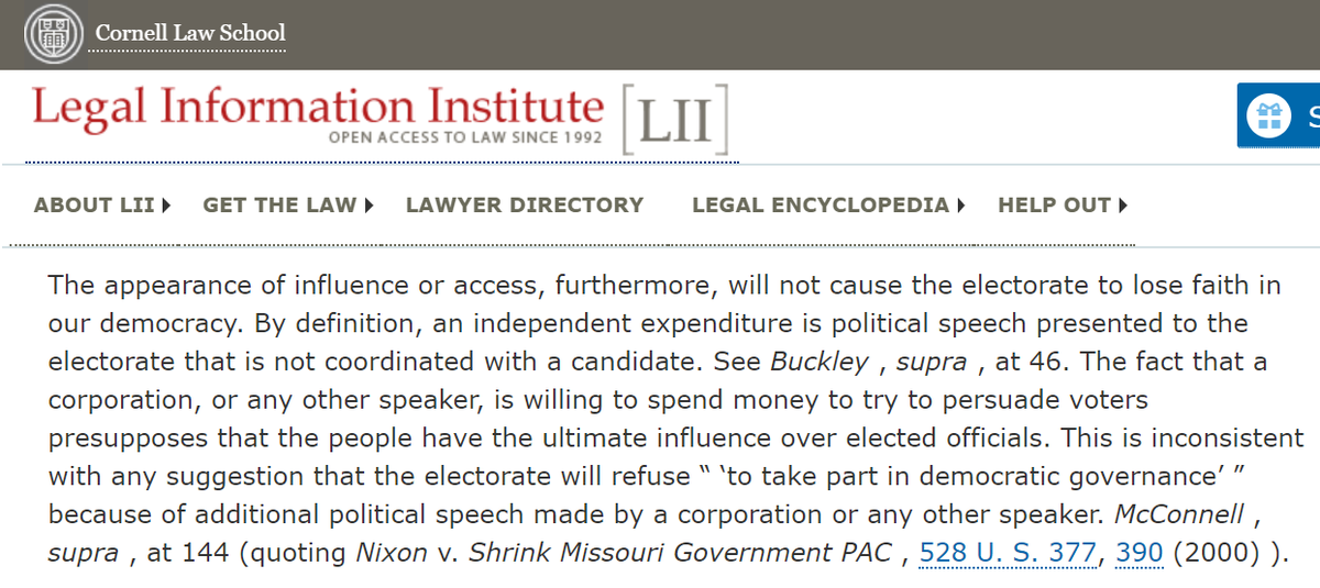 @CITIZENS_UNITED decision. The conservative majority predicted independent spending would not be coordinated & "will not cause the electorate to lose faith in our democracy."pic.twitter.com/boyjW7lvXH