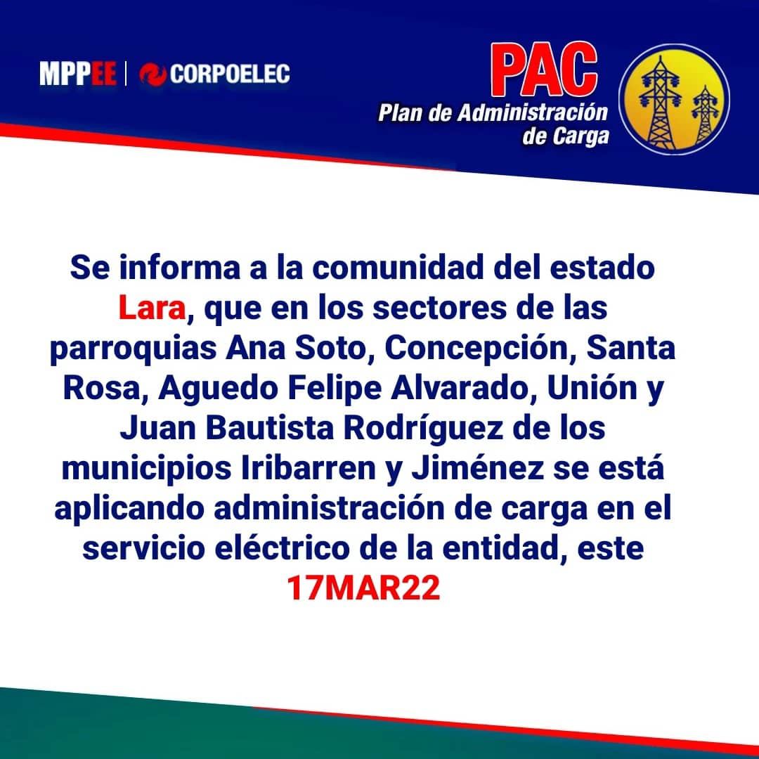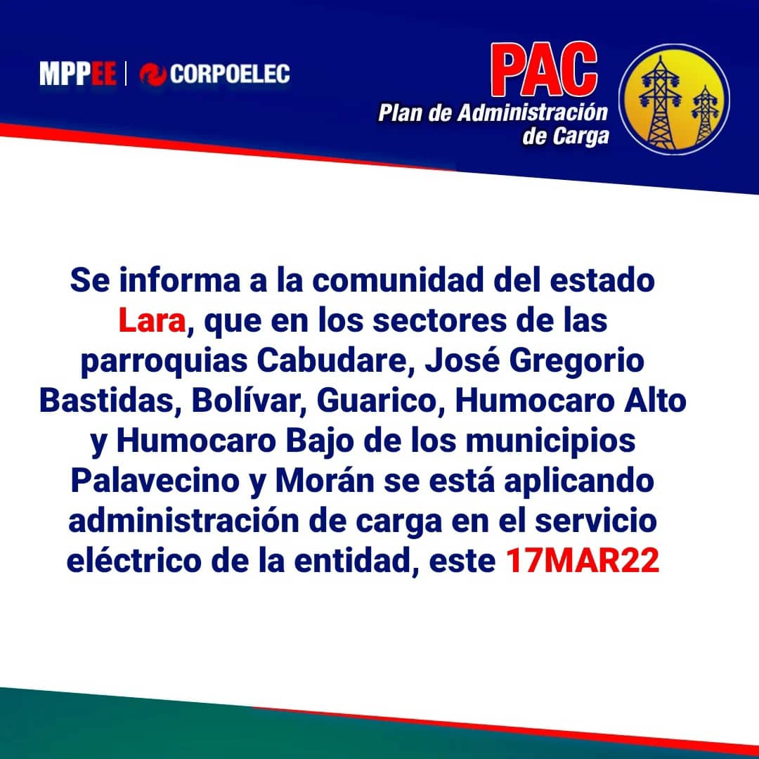 ¡ATENCIÓN! Corpoelec informó que en distintos sectores de los municipios