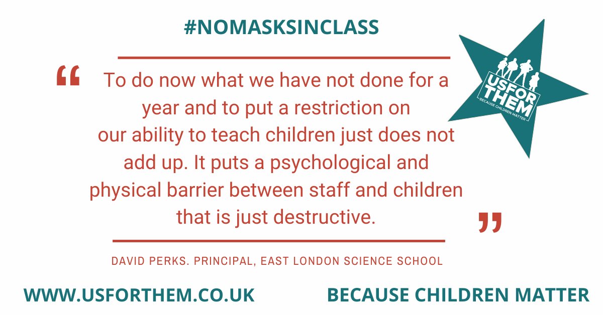 Okay, I'm a Psychologist with a PGCE and I dont understand why masks in school are an issue (unless of course someone needs to lip read or process the whole face, in which case, clear masks.) Deadly virus, mutations and long covid, now they really will batter your education!https://twitter.com/UsforThemUK/status/1365272446463582209 …