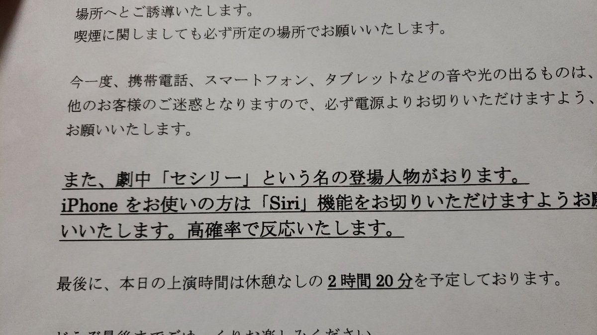 お席の諸注意にこんなものが。