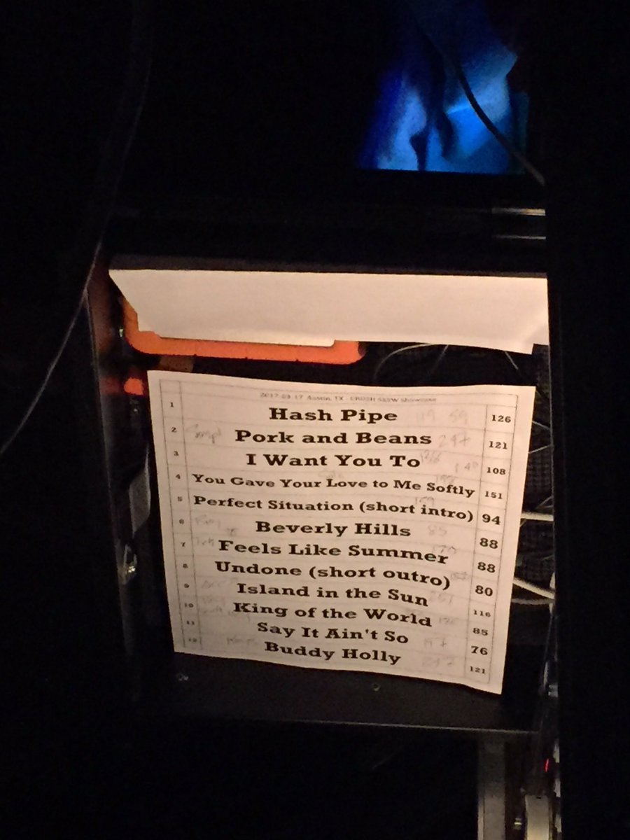 Weezer delivered a workmanlike set of 11 rock hits & a brand new song. It was, as any =w= concert is, phenomenal.
