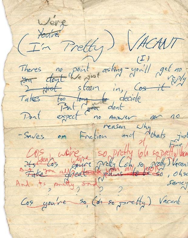 Original handwritten Pretty Vacant lyrics from The Sex Pistols.pic.twitter.com/ZgtdnNav1B