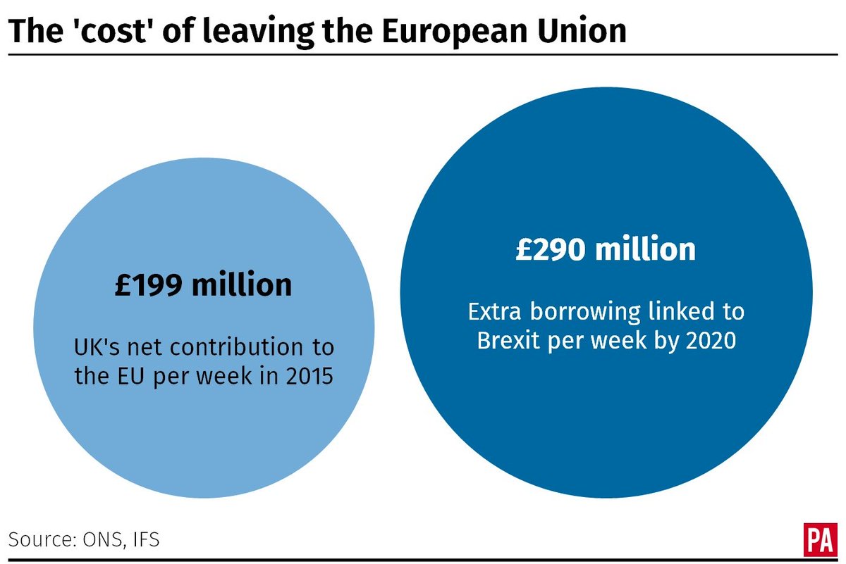 We're likely to be borrowing more per week by 2020 to pay for Brexit than we sent to the EU in 2015.