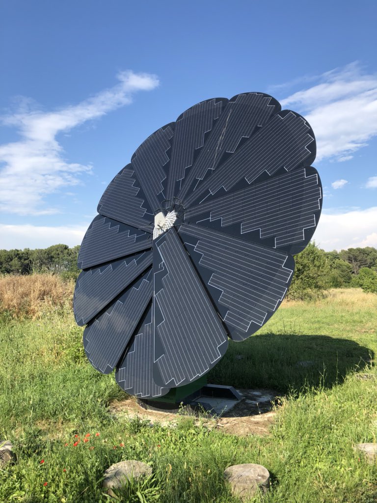 This “solar flower” turns to follow the sun, and folds itself up at night (or in high wind). Produces enough energy to power a small home and electric car during the daytime.pic.twitter.com/0MFEJKdJLk