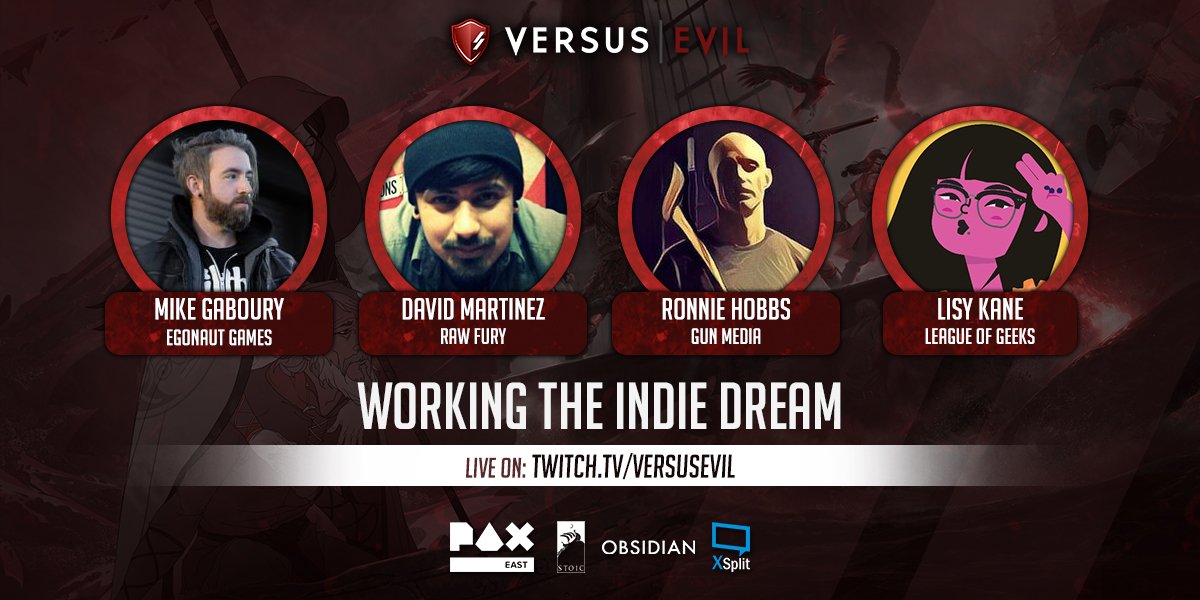 We are sharing the indie love with some of our great friends at Pax East next week on our livestream! Be sure to tune in for Working the Indie Dream featuring @mike_gaboury @HeyDmart @Rontao13 and @lisyk hosted by @CupAhNoodle at 1:00 PM-2:00 PM EDT on http://Twitch.tv/versusevil  🎮pic.twitter.com/SFz20vNwP9