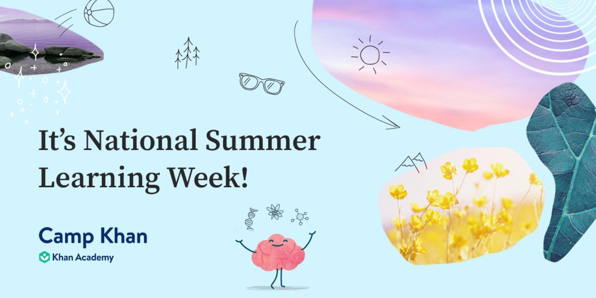Happy #SummerLearningWeek!☀️🏖️📚 Khan Academy has you covered with free online learning and our virtual summer camp, #CampKhan. Check out other ideas for beating the "summer slide" from National Summer Learning Association ➡️ @summerlearning. 🍧💪😎 #SmarterSummerspic.twitter.com/NRQBq5u0XM