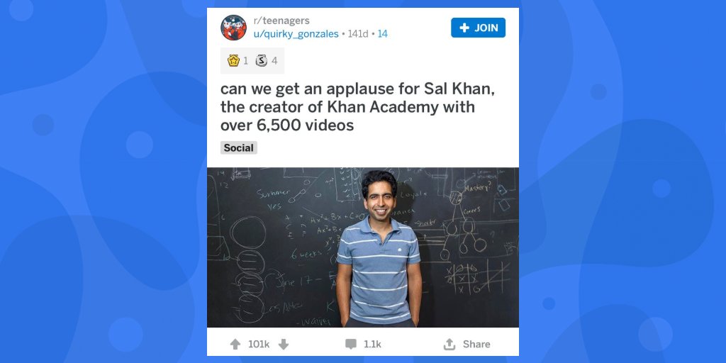 That time when Khan Academy love got 101,000 upvotes on #reddit.